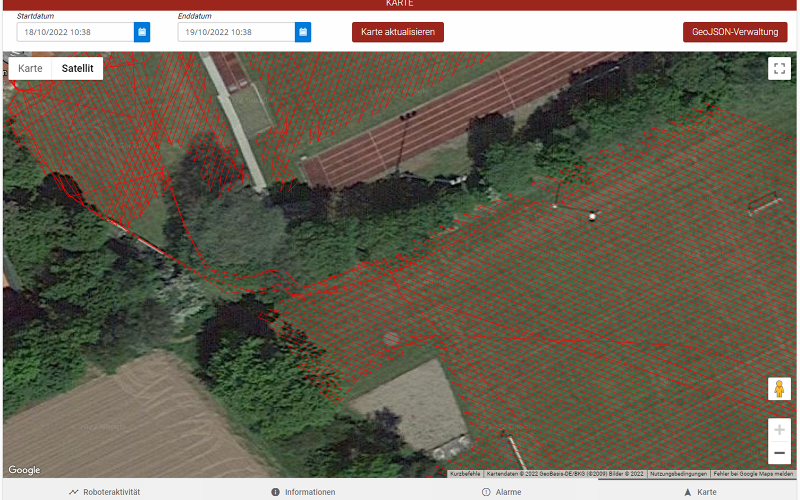 Die Besonderheit im Hybrid-Modus ist, die Roboter versuchen trotz Verlust des präzisen GPS in GPS-Schattenbereichen durch Drehmomenterkennung ihre Spuren zu halten.
