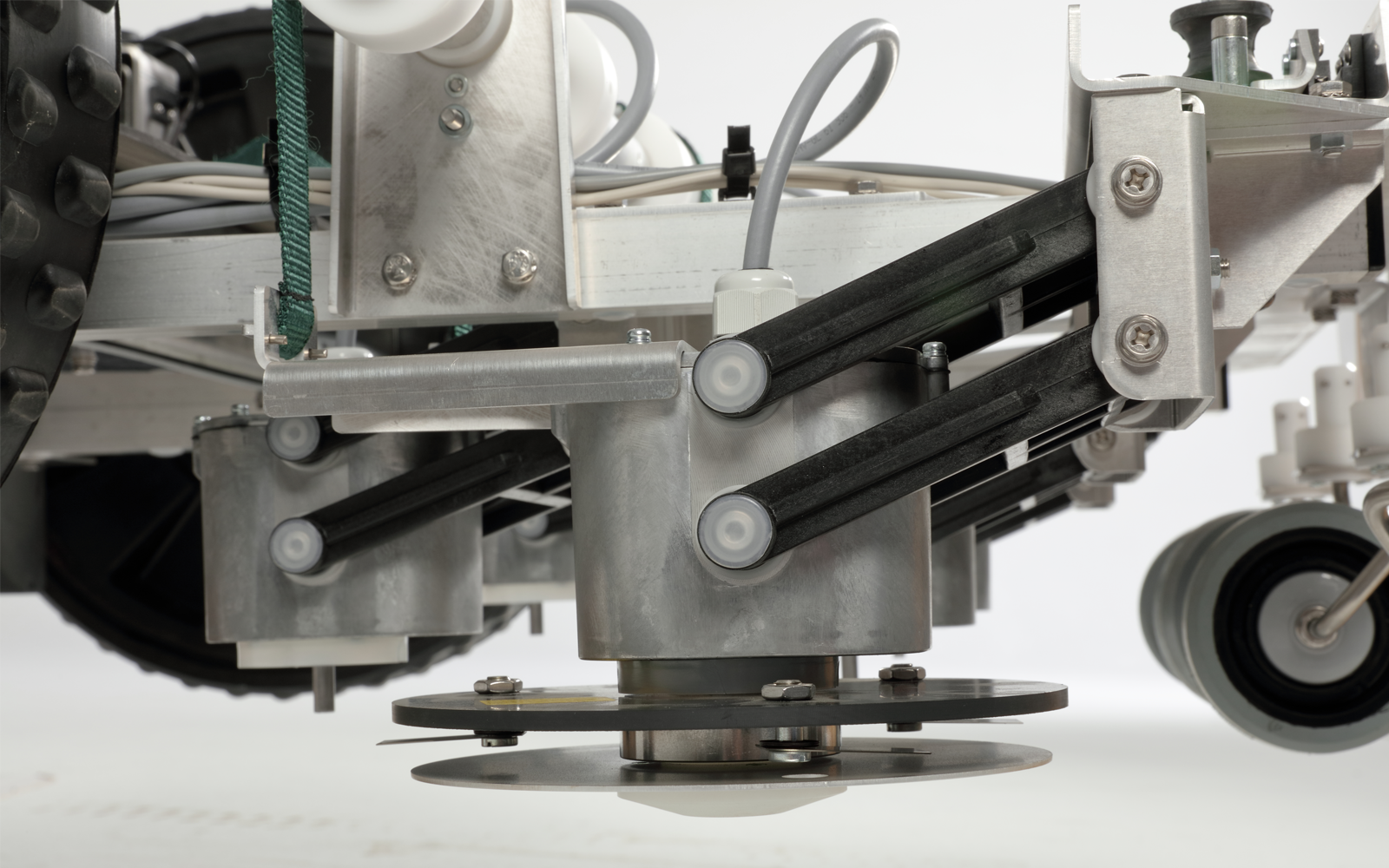 Für die zuverlässige Funktion muss ein jeder Roboter regelmäßig gereinigt und gewartet werden. Hierzu zählt neben der Überprüfung auf Funktion, das Reinigen des Unterbodens sowie der Austausch der Messerklingen. Setzten Sie einen großen Roboter ein, müssen Sie auch nur diesen reinigen. Die Messerklingen sind im Härtegrad und Schliff auf große Rasenflächen wie Sportplätzen ausgelegt. Die Drehrichtung der Messer wird nach jedem Ladevorgang automatisch gewechselt. Durch den beidseitigen Schliff ist das manuelle Wenden der Messer nicht erforderlich. Die Standzeit wird verlängert.