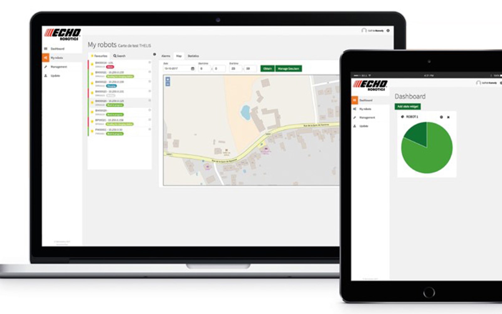 Roboter, die heute auf den Markt kommen, haben oftmals die Möglichkeit, dass sie per Bluetooth oder Wifi gesteuert werden. Jedoch mangelt es häufig an einem Benutzerverwaltungssystem, weshalb nur ein Mitarbeiter in der Gemeinde oder im Verein den Roboter steuern und verfolgen kann. Das Fleet Management System von Echo erlaubt hingegen das Hinzufügen und Administrieren von beliebig vielen Nutzern. Updates werden bequem über die Cloud ausgeliefert.