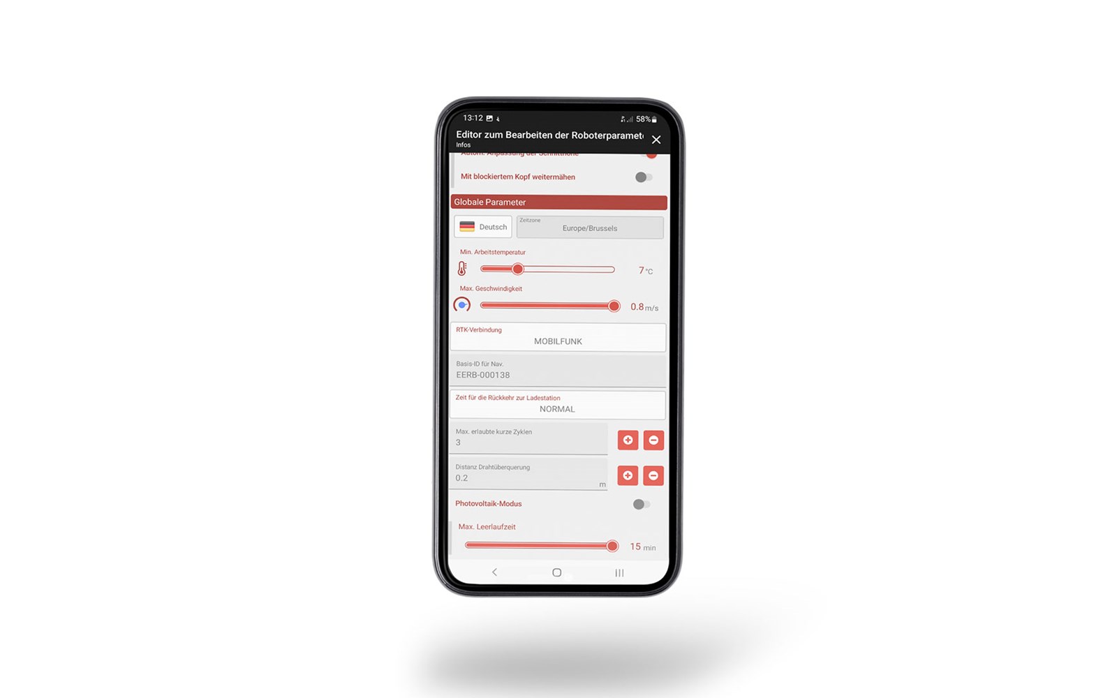 | Konfigurationsparameter online ändern: Zeitplan, Schnitthöhe, Parzellen%, min. Arbeitstemp. | Ja | Ja | |