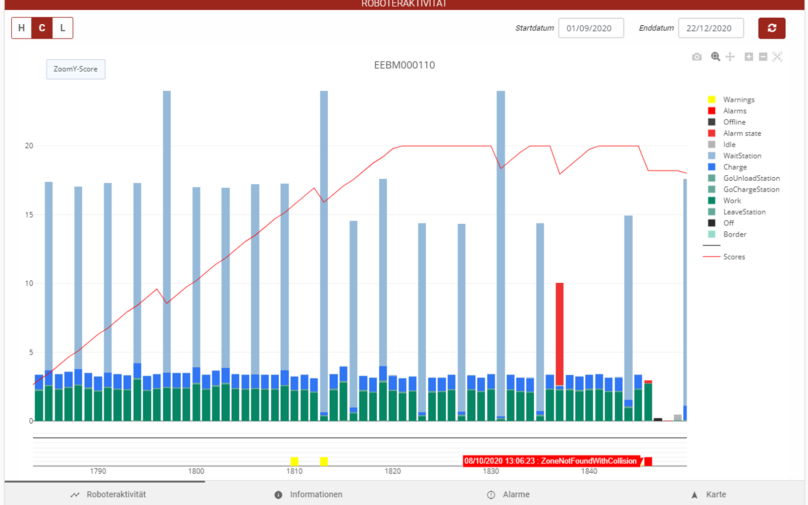 Das Webportal ist so ausgelegt worden, dass auch größere Kunden die gesamte Flotte im Überblick behalten und schnell erkennen, welche Roboter zuverlässig laufen und welche immer wieder eine Störung melden. Unsere Flottenübersicht bietet hierzu entsprechende Filter-, Gruppier und Suchfunktionen. Nach der Analyse eines Roboters können Sie sich entscheiden, ob Sie die Konfiguration optimieren oder Installation anpassen. Da Ihr Echo Robotics Partner ebenso Zugriff auf den Roboter hat, kann er Sie bei der Entscheidung unterstützen.