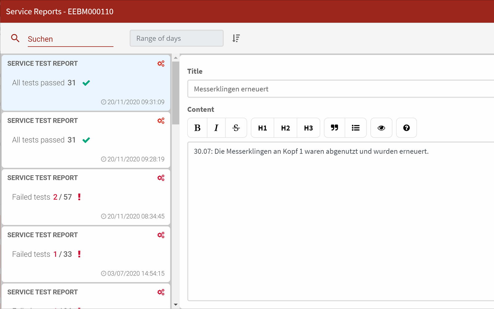 Wartungsberichte