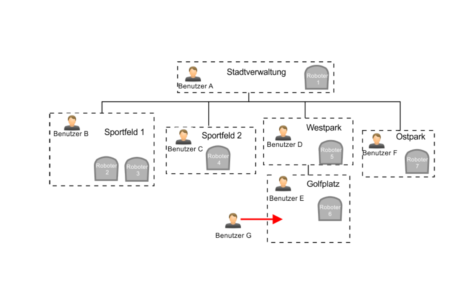 Über das Webportal von Echo Robotics können Sie beliebig viele weitere Benutzer anlegen. Ein Benutzer hat immer nur maximal Zugriff auf Benutzer und Roboter in der eigenen Entität oder den darunterliegenden Entitäten. Die wichtigsten Rollen im Überblick.